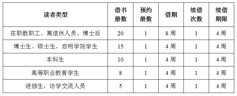 各类读者借书权限