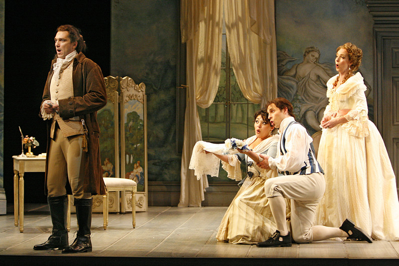 这个消息使在场的人表情各异:洋洋得意的马尔切琳娜和医生、幸灾乐祸的巴西利奥和伯爵、可怜巴巴的苏姗娜、满怀同情的伯爵夫人、不知所措的费加罗--唱起一首可笑的七重唱。