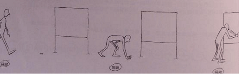 如果这是连环画,或者我们想在分镜中呈现故事,我们仅仅需要这三个位置,三张画图。尽量保持并使用线条人物,才不会陷入繁琐的细节。这三个位置,就是关键位置。
