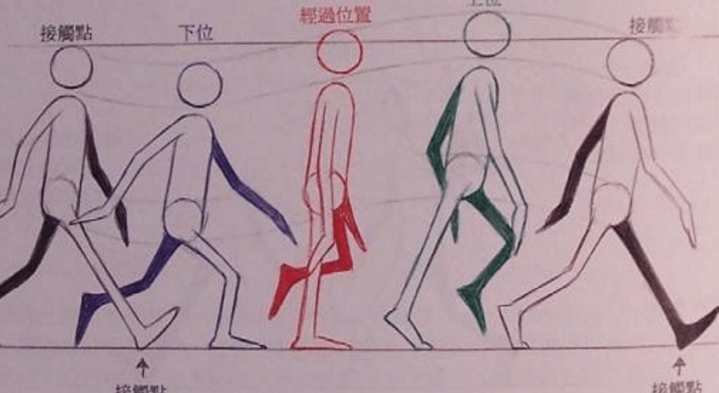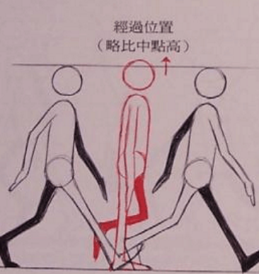 如果我们画出生动的动作步法,效果却不怎么好,使得动作有一些漂浮的感觉。没有人确切知道这是因为什么,但是我们增加了上下的动作,强调或夸大了上下动作后,此时效果就出来了。