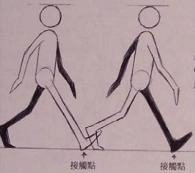 我们做出两个接触位置。在传统的步法中,双臂与双腿呈现相反的方向,以保持平衡。