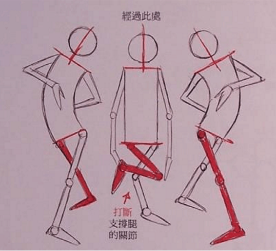 让经过位置向下,腿部往内移,打断支撑的一只脚,有点像膝外翻,此举能产生十分有趣的效果。