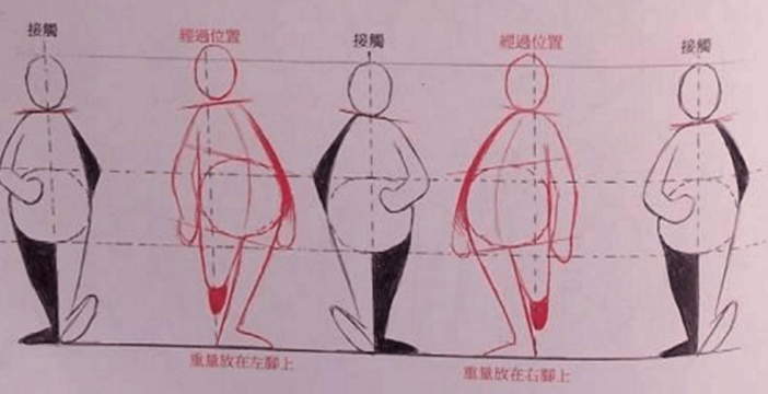 跨步行走时,重量会从一只脚转移到另外一只脚。