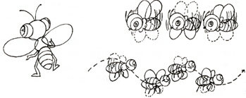 (2)蜜蜂和苍蝇,蜜蜂和苍蝇只有一对翅膀。飞行动作比较急促,双翅扇动频率较快。翅膀扇动在同一帧画面上,可以同时做出上下两对翅膀,前一帧翅膀向上,后一帧与之相反。飞行一段时间后,还可以让身体在空中停顿,只要做出翅膀不停上下扇动即可。