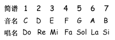 两个音之间的距离叫做音程,单位为“度”。1-1为一度,1-2为二度,依次类推1-5为五度,1-6为六度,1-7为七度。把八度内的音分为频率均等的十二个音叫做十二平均律。半音为十二平均律的最小单位,两个半音构成一个全音。除3-4和7到高音1为半音外其它为全音关系。