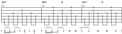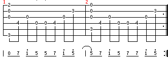 弹奏的音也可以这样表示,左手按好和弦,右手依次拨弦 。听听