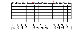 5.第五小节是异弦圆滑音(上行),右手弹出第一个音,另一个音用左手用力击弦位发出。