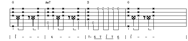 还记的圆滑音吗?圆滑音和装饰音的左手指击弦和钩弦使琴弦发出声音,在民谣吉他六线谱它们分别是用H和P来表示。