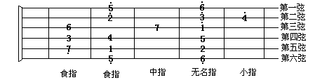 4.把位确认以后,左手指法按上图,不可以跨品。我们以食指为基准就可以很轻松的弹出Mi型的音阶。