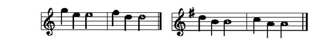 移调:移调就是把一首曲子平移到另一个调上。例如上图是大家熟悉的小蜜蜂旋律,在C大调是G E E-...,移到G大调变成 D B B-...。移调之后所有音向下平移完全四度,调号也变成一个升,但是仍是原来的旋律。我们到卡拉OK唱歌时,升降Key就是将曲子移调。机器移调不用考虑升降记号的问题,只需要改变频率高低。我们吹乐器的人就要注意调性改变的问题。所以如果帮人家伴奏的时候,唱歌的人要升一个全音,那就要记得旋律升高,还要多两个升记号(例如:C调 -> D调、G调 -> A调)或者少两个降记号(例如:Bb调 -> C调、Eb调 -> F调)
