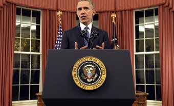 以下是我们的策略。首先,我们的军队将在任何必要的国家继续追捕恐怖分子阴谋家。在伊拉克和叙利亚,空袭正在除去“伊斯兰国”的领导人、重型武器、石油运输车和基础设施。而且巴黎恐袭以来,我们最亲密的盟友——法国、德国和英国——已加强了作战投入,这将有助于加速摧毁“伊斯兰国”。