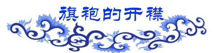 旗袍的开襟,在款式方面没有太多,而通常选择的有七种,包括单襟、双襟、直襟、斜襟、琶琵襟、曲襟以及没有襟。在制作方面,双襟比单襟复杂,师傅先在旗袍上开了两边的襟,然後把其中一个襟缝合,这个襟只作装饰,所以穿著双襟的旗袍与单襟的一样,只不过双襟的旗袍在视觉上较为美观和高贵。直襟就比较少,至于斜襟以前通常会配衬大花钮,但现在都会改用较细的花钮。曲襟的形状仿如有角的S型,因为其开口较大,所以比较容易穿著。