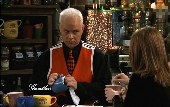 Gunther出现在六个朋友每天的生活里,但他却从来没能加入到他们的内部小圈子。这也变成了一个持续性的笑话。在Ross的单身派对上,Chandler宣布,他想Gunther作他的伴郎。Gunther立即问Chandler他姓什么;Chandler想了一下,失败的回答“Gunther Centralperk?”。他姓什么在整部电视剧中都没有交代。另一个类似的例子是,当Ross庆祝自己得到了一个讲师任期时向Gunther要六个杯子,Gunther满怀希望的问“你要我一起庆祝啊?”,Ross却回应道“哦,我还以为Joey也在呢,那就5个好了”。Gunther能说一口流利的荷兰语,有一次叫Ross‘ezel’(蠢驴的意思),Ross查了一下字典,发现‘ezel’是蠢驴的意思,就补充了一句Gunther自己是‘ezel’。Gunther又回他“jij hebt seks met ezels”(你和蠢驴做爱的意思),这下Ross傻了,根本不知道这句话什么意思。